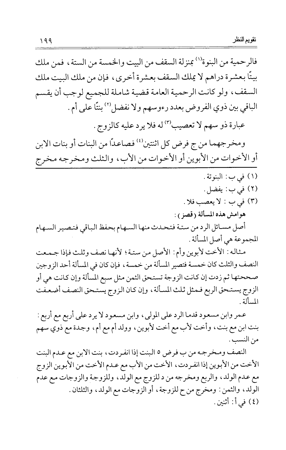 ومخرجهما من ج فرض كل اثْنَتَيْنِ فَصَاعِدا من الْبَنَات أَو بَنَات الابْن أَو الْأَخَوَات من الْأَبَوَيْنِ أَو الْأَخَوَات من الْأَب، وَالثلث ومخرجه مخرج