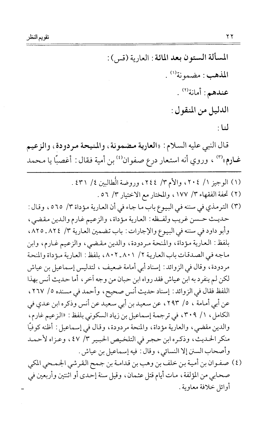 (الْمَسْأَلَة السِّتُّونَ بعد الْمِائَة: الْعَارِية (قس) :)