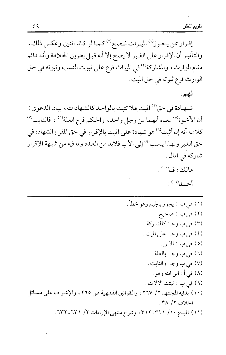 إِقْرَار مِمَّن يحوز الْمِيرَاث فصح كَمَا لَو كَانَا اثْنَيْنِ وَعكس ذَلِك، والتأثير أَن الْإِقْرَار على الْغَيْر لَا يَصح إِلَّا أَنه قبل بطرِيق الْخلَافَة وَأَنه قَائِم مقَام الْوَارِث، والمشاركة فِي الْمِيرَاث فرع على ثُبُوت النّسَب وثبوته فِي حق الْوَارِث فرع ثُبُوته فِي حق الْمَيِّت.