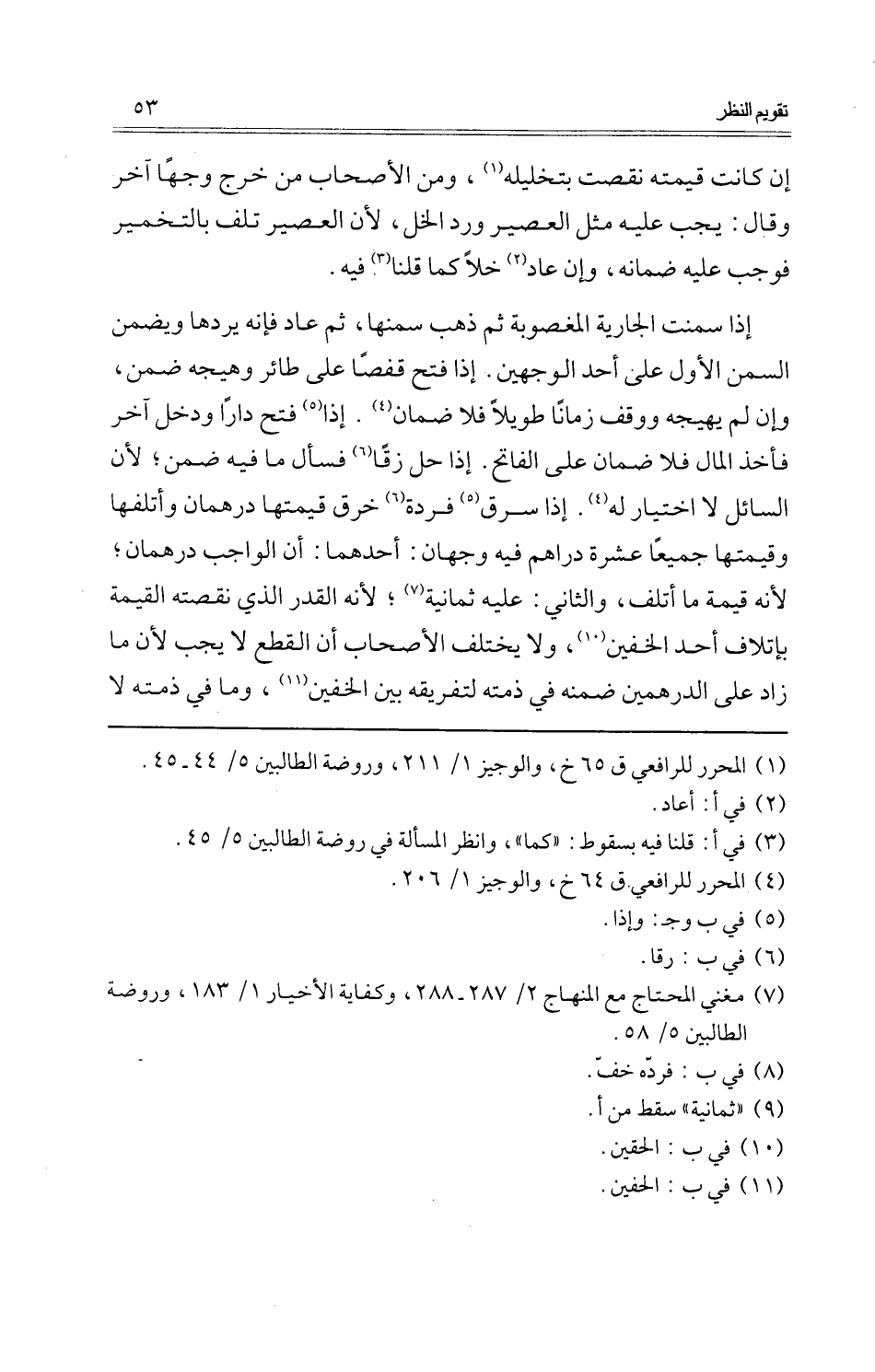 إِذا سمنت الْجَارِيَة الْمَغْصُوبَة ثمَّ ذهب سمنها، ثمَّ عَاد فَإِنَّهُ يردهَا وَيضمن السّمن الأول على أحد الْوَجْهَيْنِ. إِذا فتح قفصا على طَائِر وهيجه ضمن، وَإِن لم يهيجه ووقف زَمَانا طَويلا فَلَا ضَمَان. إِذا فتح دَارا وَدخل آخر فَأخذ المَال فَلَا ضَمَان على الفاتح. إِذا حل زقا فَسَأَلَ مَا فِيهِ ضمن؛ لِأَن السَّائِل لَا اخْتِيَار لَهُ. إِذا سرق فردة خرق قيمتهَا دِرْهَمَانِ وأتلفها وَقيمتهَا جَمِيعًا عشرَة دَرَاهِم فِيهِ وَجْهَان: أَحدهمَا: أَن الْوَاجِب دِرْهَمَانِ؛ لِأَنَّهُ قيمَة مَا أتلف، وَالثَّانِي: عَلَيْهِ ثَمَانِيَة؛ لِأَنَّهُ الْقدر الَّذِي نقصته الْقيمَة بِإِتْلَاف أحد الْخُفَّيْنِ، وَلَا يخْتَلف الْأَصْحَاب أَن الْقطع لَا يجب لِأَن مَا زَاد على الدرهمين ضمنه فِي ذمَّته لتفريقه بَين الْخُفَّيْنِ، وَمَا فِي ذمَّته لَا