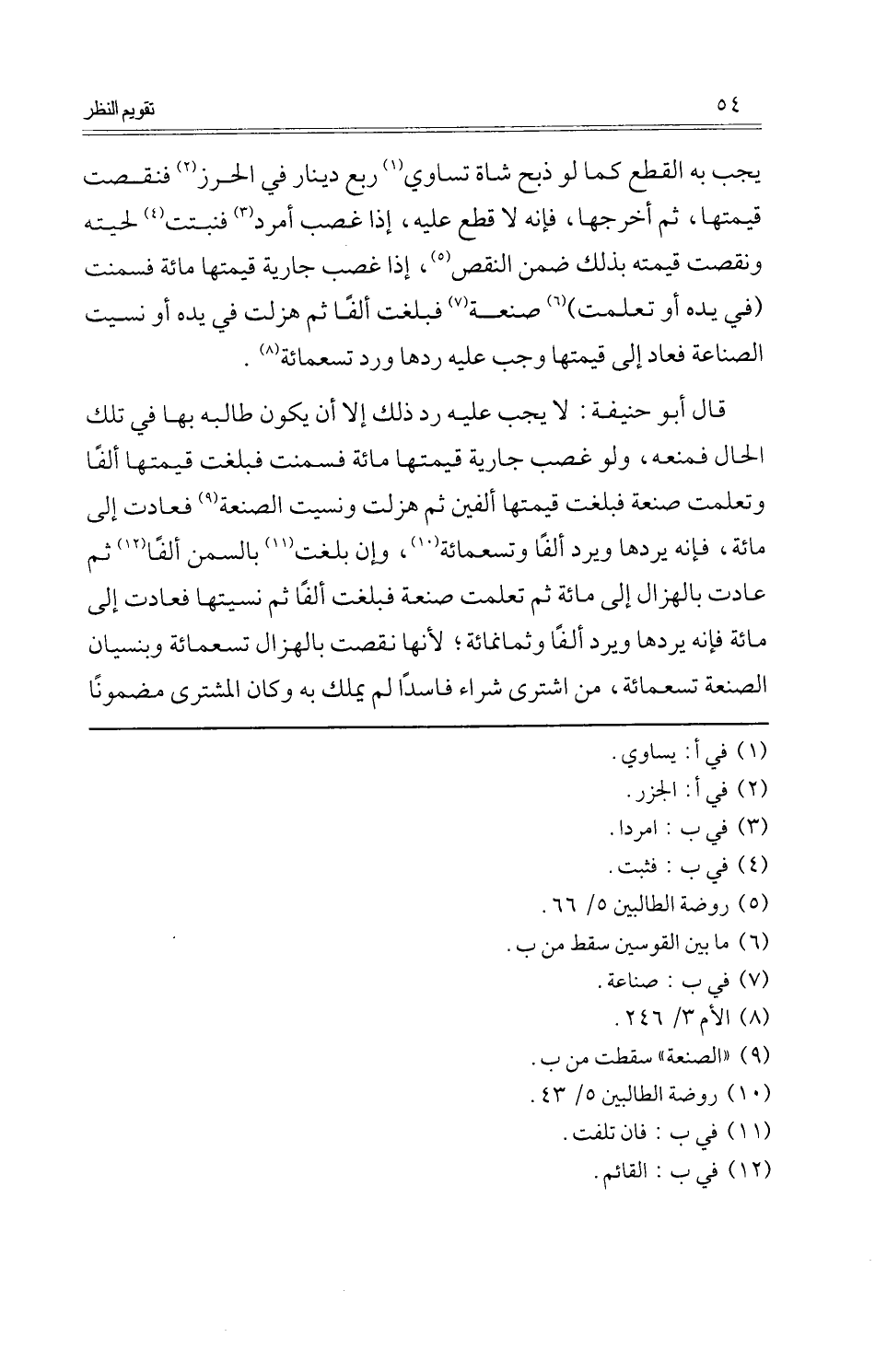 يجب بِهِ الْقطع كَمَا لَو ذبح شَاة تَسَاوِي ربع دِينَار فِي الْحِرْز فنقصت قيمتهَا، ثمَّ أخرجهَا، فَإِنَّهُ لَا قطع عَلَيْهِ، إِذا غصب أَمْرَد فَنَبَتَتْ لحيته ونقصت قِيمَته بذلك ضمن النَّقْص، إِذا غصب جَارِيَة قيمتهَا مائَة فَسَمنت (فِي يَده أَو تعلمت) صَنْعَة فبلغت ألفا ثمَّ هزلت فِي يَده أَو نسيت الصِّنَاعَة فَعَاد إِلَى قيمتهَا وَجب عَلَيْهِ ردهَا ورد تِسْعمائَة.