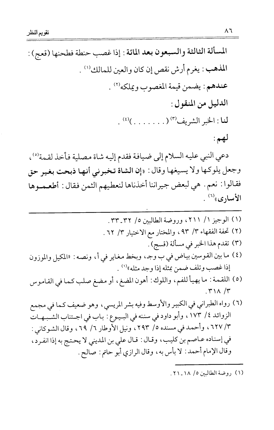 الْمَسْأَلَة الثَّالِثَة وَالسَّبْعُونَ بعد الْمِائَة: إِذا غصب حِنْطَة فطحنها (قعج) :