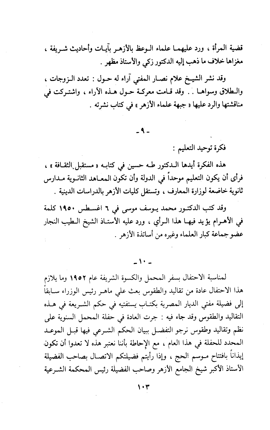 وقد كتب الدكتور محمد يوسف موسى في 6 اغسطس 1950 كلمة في الأهرام يؤيد فيها هذا الرأي، ورد عليه الأستاذ الشيخ الطيب النجار عضو جماعة كبار العلماء وغيره من أساتذة الأزهر.