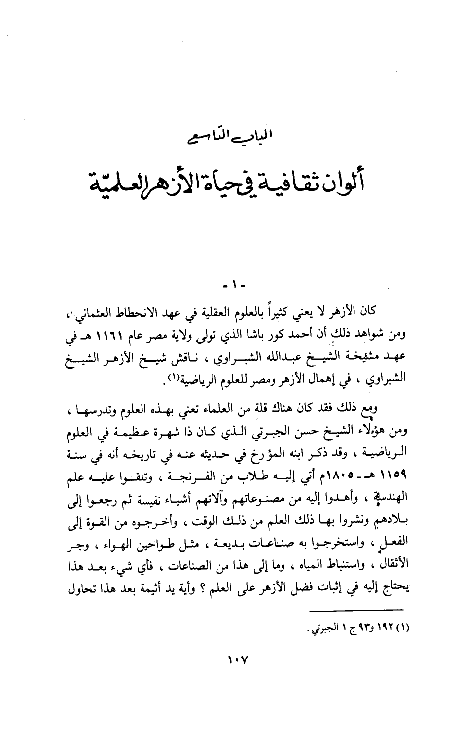 ومع ذلك فقد كان هناك قلة من العلماء تعني بهذه العلوم وتدرسها، ومن هؤلاء الشيخ حسن الجبرتي الذي كان ذا شهرة عظيمة في العلوم الرياضية، وقد ذكر ابنه المؤرخ في حديثه عنه في تاريخه أنه في سنة 1159 ه- 1805 م أتي إليه طلاب من الفرنجة، وتلقوا عليه علم الهندسة، وأهدوا إليه من مصنوعاتهم وآلاتهم أشياء نفيسة ثم رجعوا إلى بلادهم ونشروا بها ذلك العلم من ذلك الوقت، وأخرجوه من القوة إلى الفعل، واستخرجوا به صناعات بديعة، مثل طواحين الهواء، وجر الأثقال، واستنباط المياه، وما إلى هذا من الصناعات، فأي شيء بعد هذا يحتاج إليه في إثبات فضل الأزهر على العلم؟ وأية يد أثيمة بعد هذا تحاول