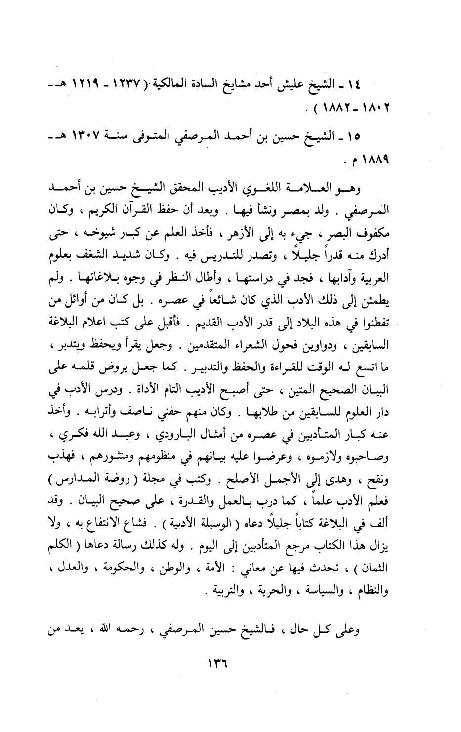 15 - الشيخ حسين بن أحمد المرصفي المتوفى سنة 1307 ه- 1889 م.