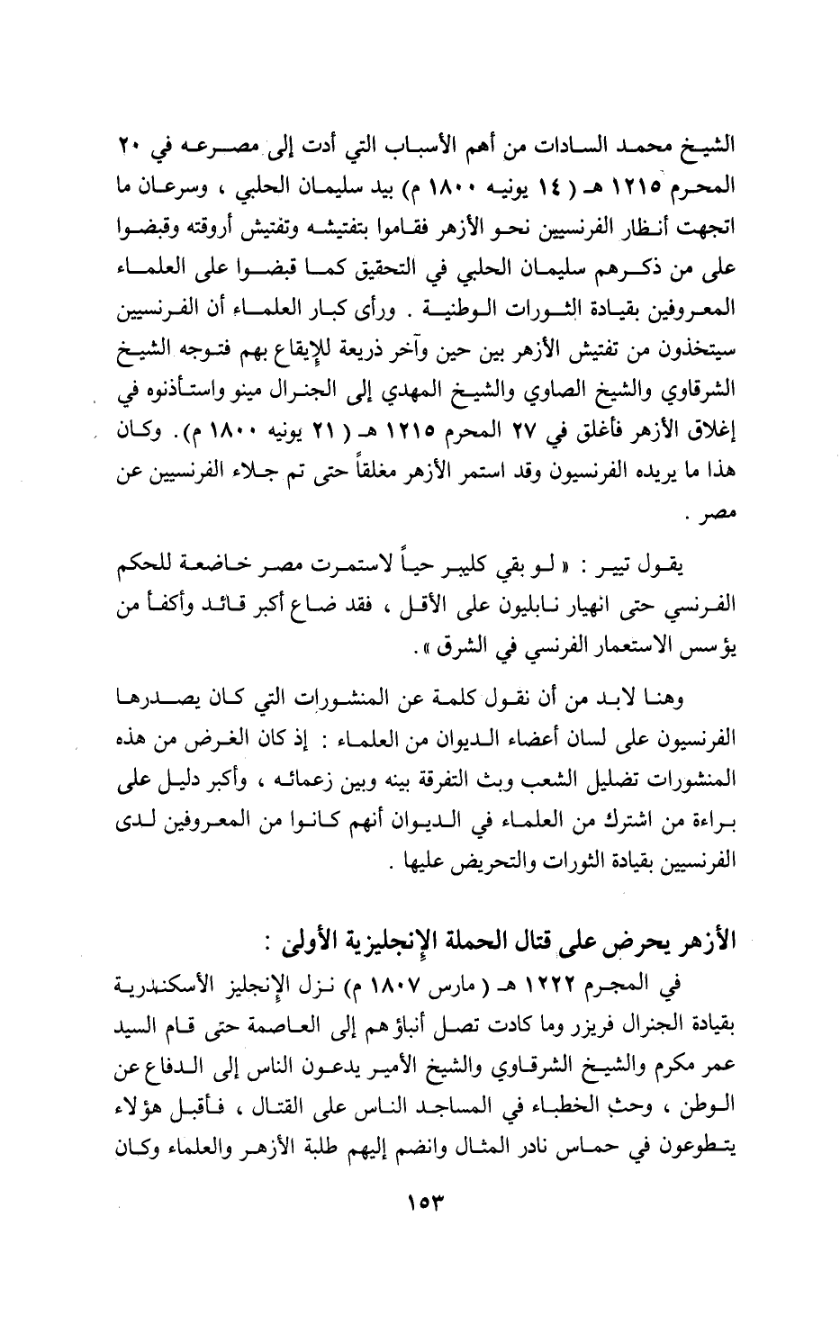 في المجرم 1222 ه (مارس 1807 م) نزل الإنجليز الأسكندرية بقيادة الجنرال فريزر وما كادت تصل أنباؤهم إلى العاصمة حتى قام السيد عمر مكرم والشيخ الشرقاوي والشيخ الأمير يدعون الناس إلى الدفاع عن الوطن، وحث الخطباء في المساجد الناس على القتال، فأقبل هؤلاء يتطوعون في حماس نادر المثال وانضم إليهم طلبة الأزهر والعلماء وكان