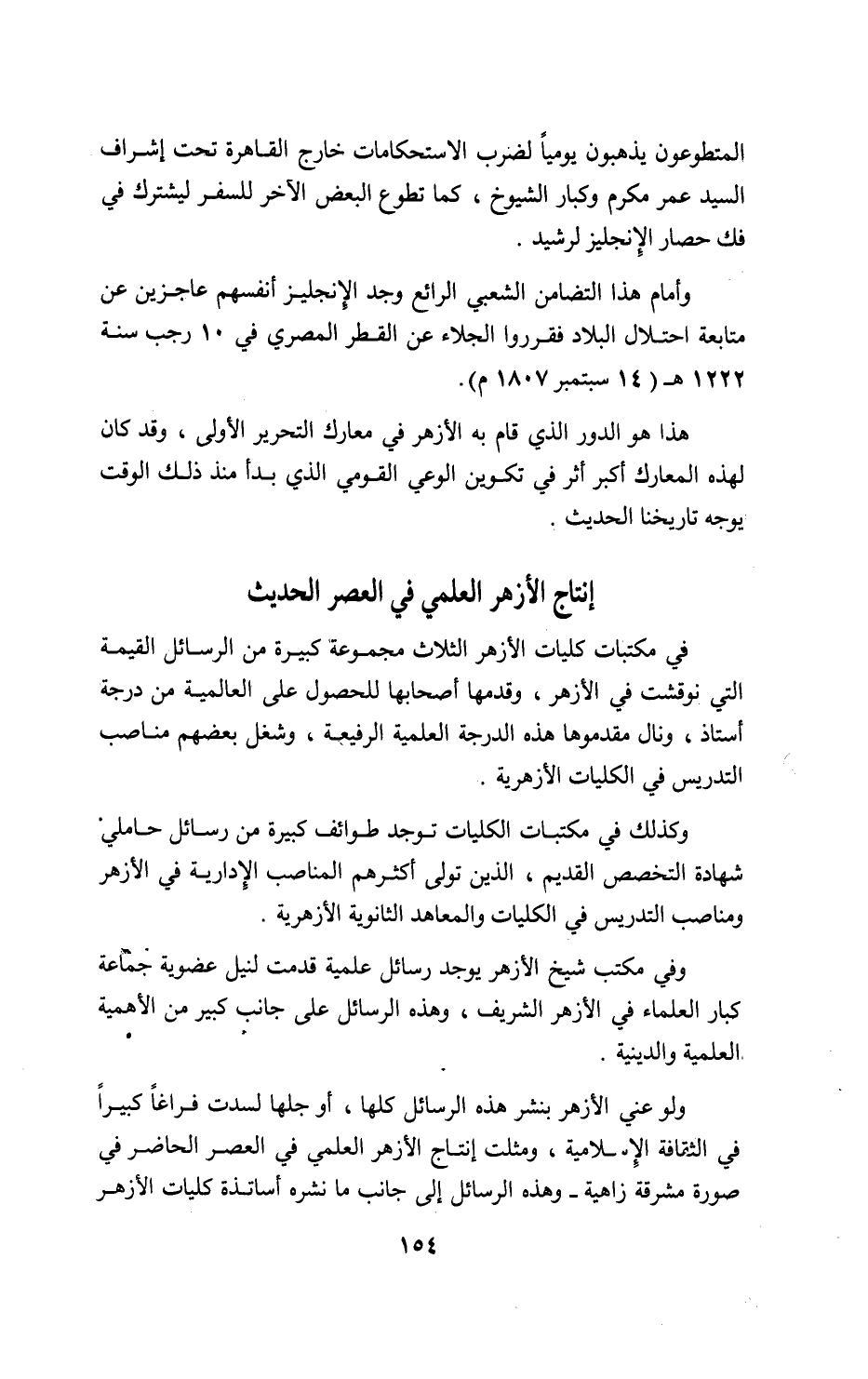 هذا هو الدور الذي قام به الأزهر في معارك التحرير الأولى، وقد كان لهذه المعارك أكبر أثر في تكوين الوعي القومي الذي بدأ منذ ذلك الوقت يوجه تاريخنا الحديث.