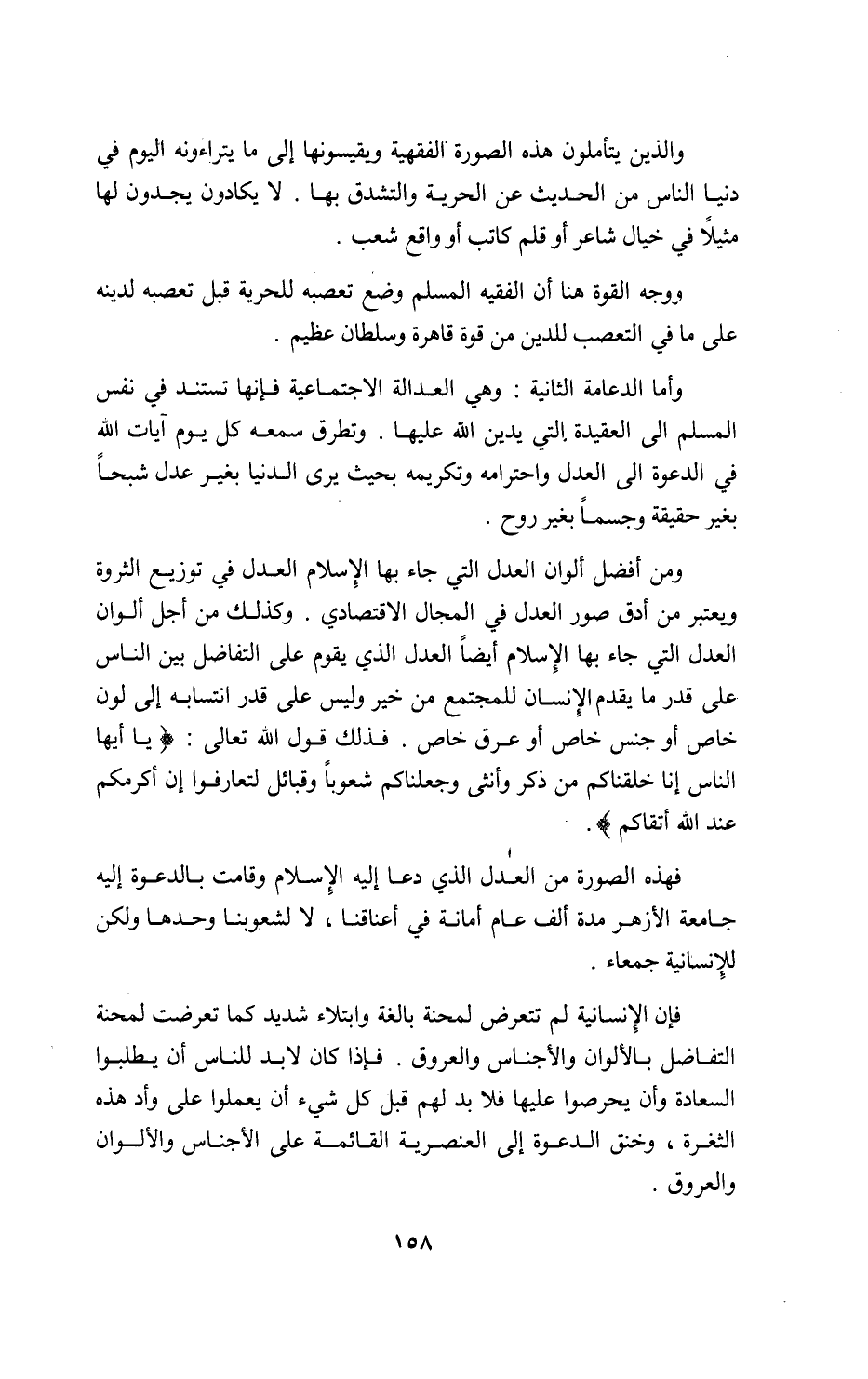 فهذه الصورة من العدل الذي دعا إليه الإسلام وقامت بالدعوة إليه جامعة الأزهر مدة ألف عام أمانة في أعناقنا، لا لشعوبنا وحدها ولكن للإنسانية جمعاء.