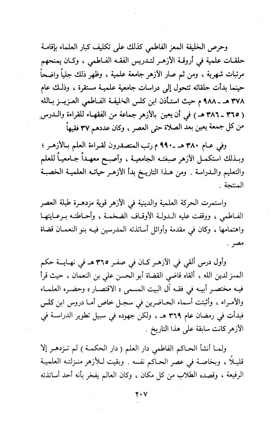 وحرص الخليفة المعز الفاطمي كذلك على تكليف كبار العلماء بإقامة حلقات علمية في أروقة الأزهر لتدريس الفقه الفاطمي، وكان يمنحهم مرتبات شهرية، ومن ثم صار الأزهر جامعة علمية، وظهر ذلك جليا واضحا حينما بدأت حلقاته تتحول إلى دراسات جامعية علمية مستقرة، وذلك عام 378 ه- 988 م حيث استأذن ابن كلس الخليفة الفاطمي العزيز بالله (365 - 386 ه) في أن يعين بالأزهر جماعة من الفقهاء للقراءة والدرس من كل جمعة يعين بعد الصلاة حتى العصر، وكان عددهم 37 فقيها.