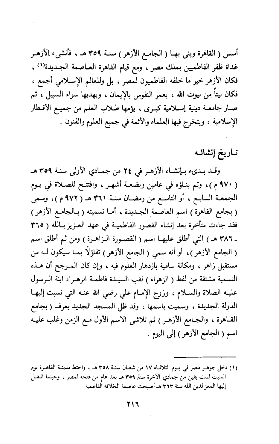 1) دخل جوهر مصر في يوم الثلاثاء 17 من شعبان سنة 358 ه، واختط مدينة القاهرة يوم السبت لست بقين من جمادي الآخرة سنة 359 ه بعد عام من فتحه لمصر، وحينما انتقل إليها المعز لدين الله سنة 363 ه أصبحت عاصمة الخلافة الفاطمية.