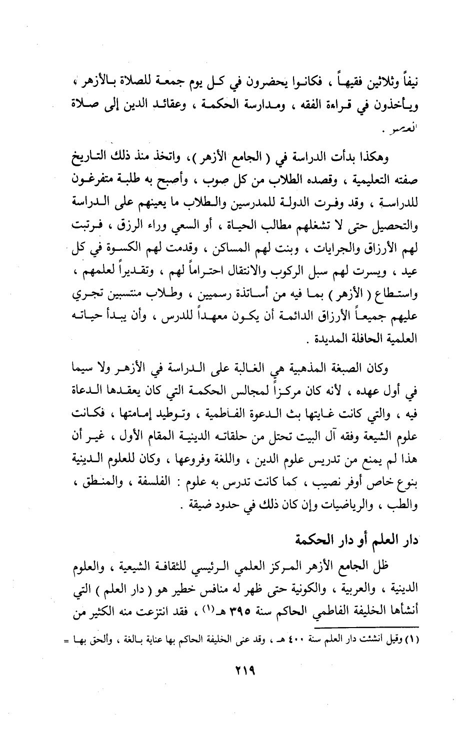 1) وقيل انشئت دار العلم سنة 400 ه، وقد عنى الخليفة الحاكم بها عناية بالغة، وألحق بها