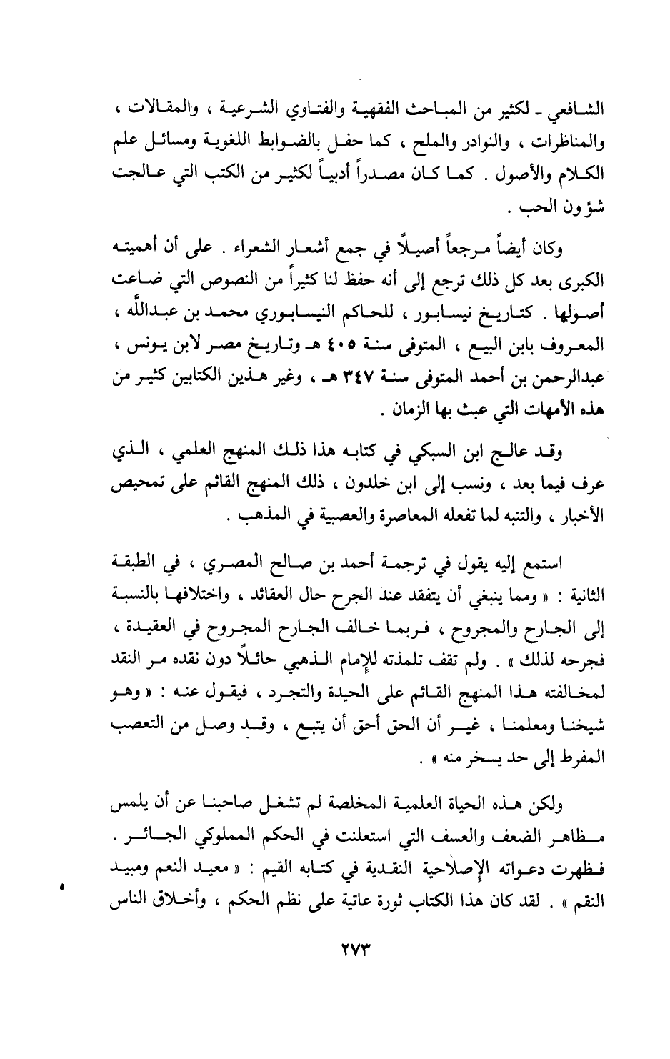 وقد عالج ابن السبكي في كتابه هذا ذلك المنهج العلمي، الذي عرف فيما بعد، ونسب إلى ابن خلدون، ذلك المنهج القائم على تمحيص الأخبار، والتنبه لما تفعله المعاصرة والعصبية في المذهب.