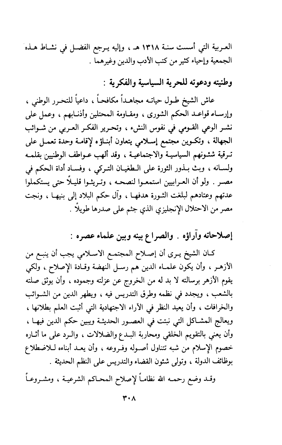 العربية التي أسست سنة 1318 ه، وإليه يرجع الفضل في نشاط هذه الجمعية وإحياء كثير من كتب الأدب والدين وغيرهما.