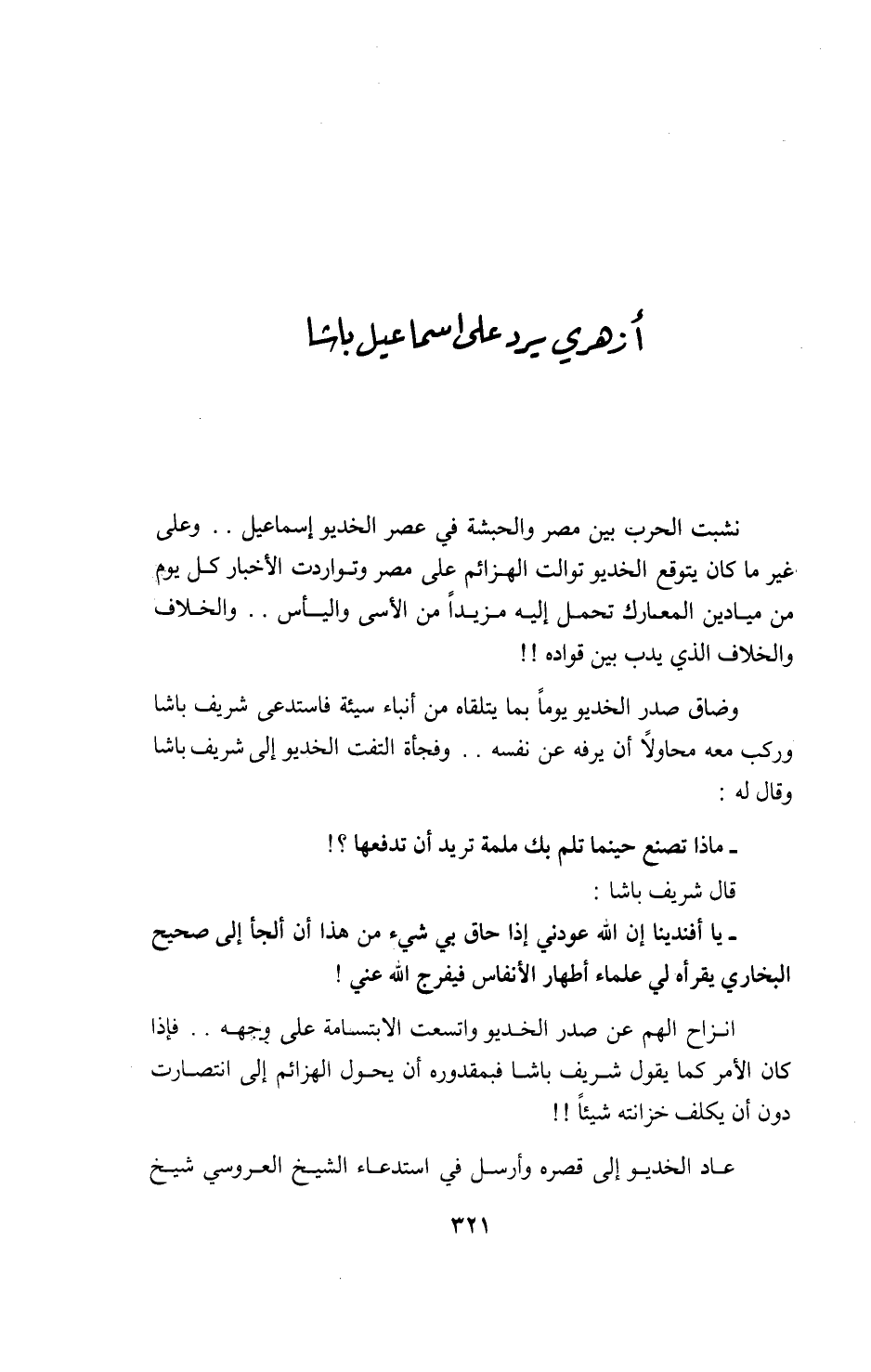 -يا أفندينا إن اللّه عودني إذا حاق بي شيء من هذا أن ألجأ إلى صحيح البخاري يقرأه لي علماء أطهار الأنفاس فيفرج اللّه عني!