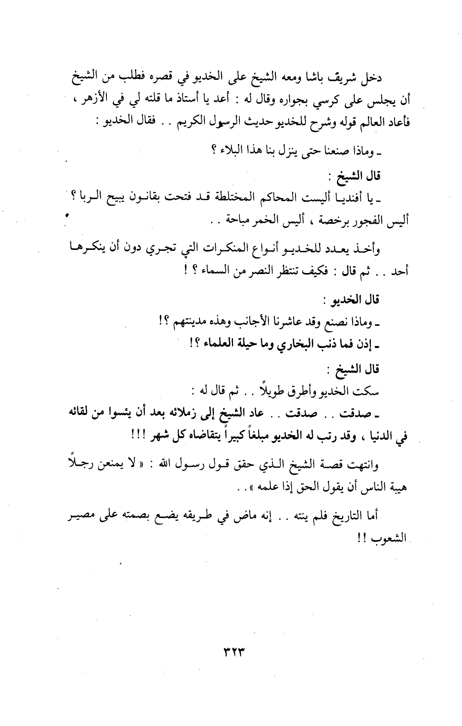 -يا أفنديا أ ليست المحاكم المختلطة قد فتحت بقانون يبيح الربا؟ أ ليس الفجور برخصة، أ ليس الخمر مباحة. .