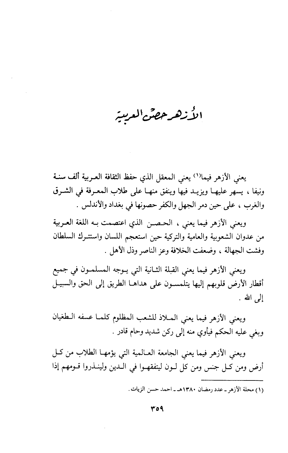 1) محلة الأزهر-عدد رمضان 1380 ه-احمد حسن الزيات.