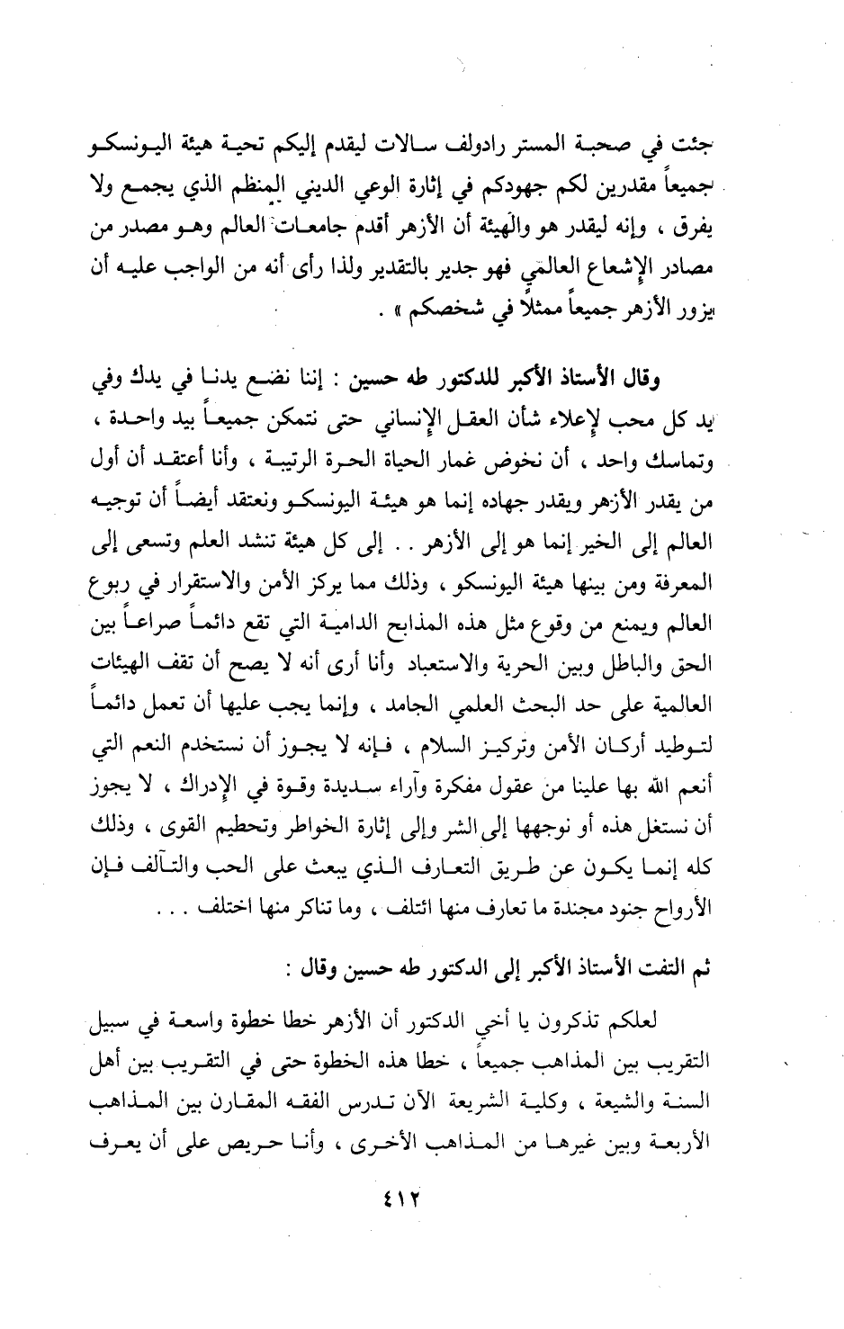 ثم التفت الأستاذ الأكبر إلى الدكتور طه حسين وقال: