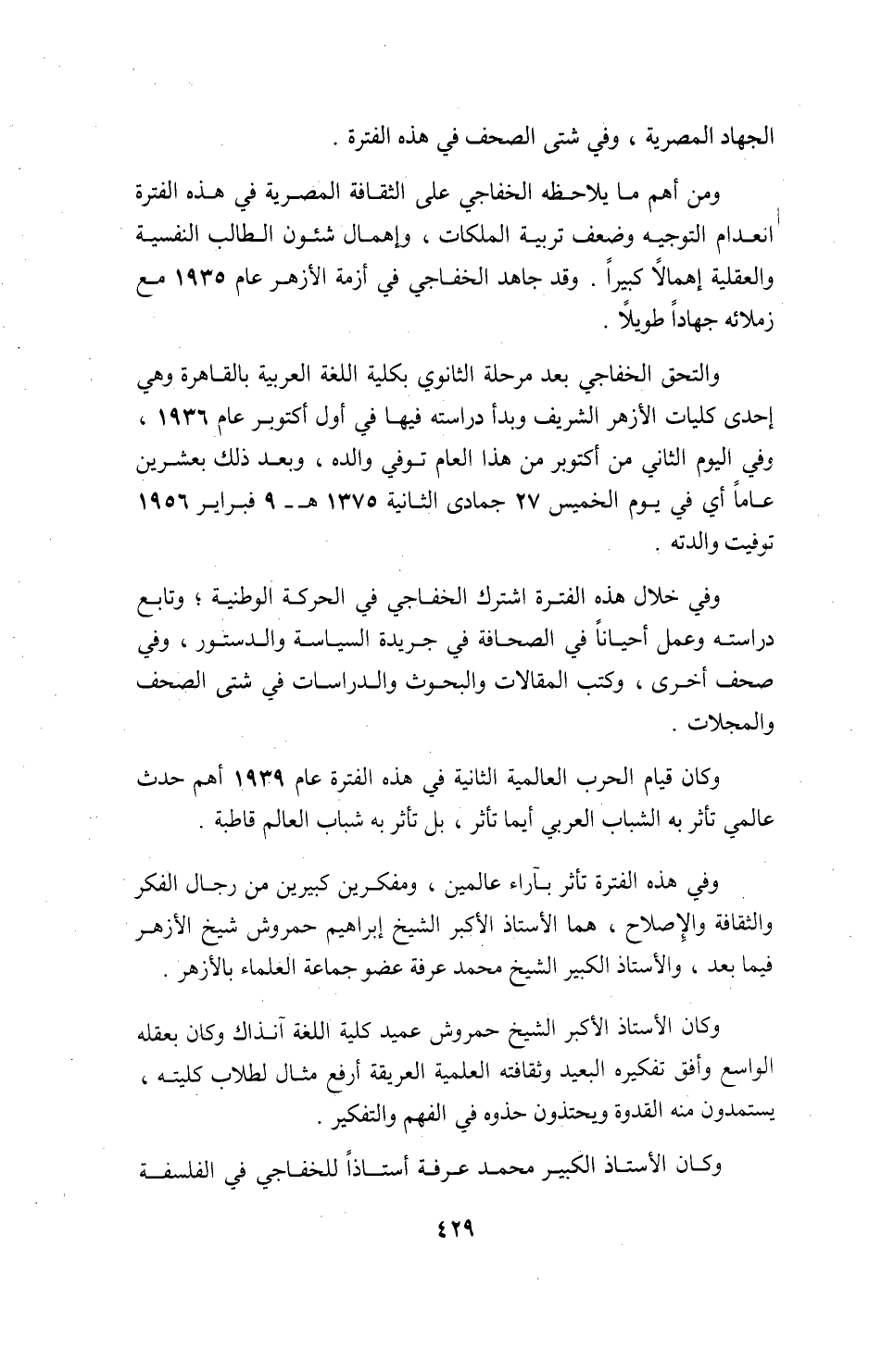 وكان الأستاذ الكبير محمد عرفة أستاذا للخفاجي في الفلسفة