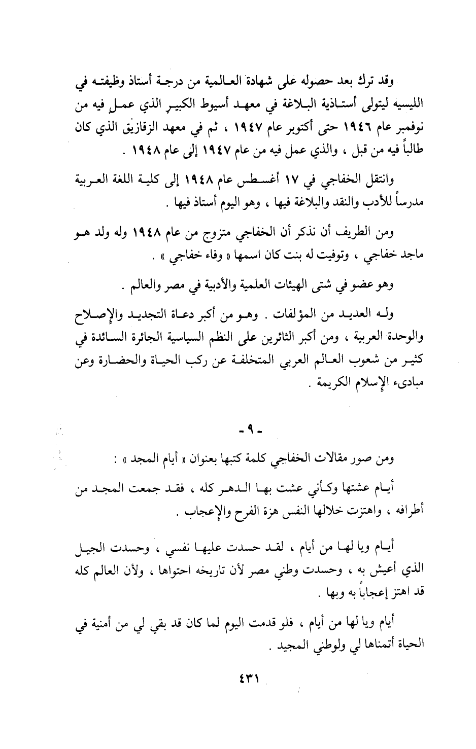 ومن صور مقالات الخفاجي كلمة كتبها بعنوان «أيام المجد»: