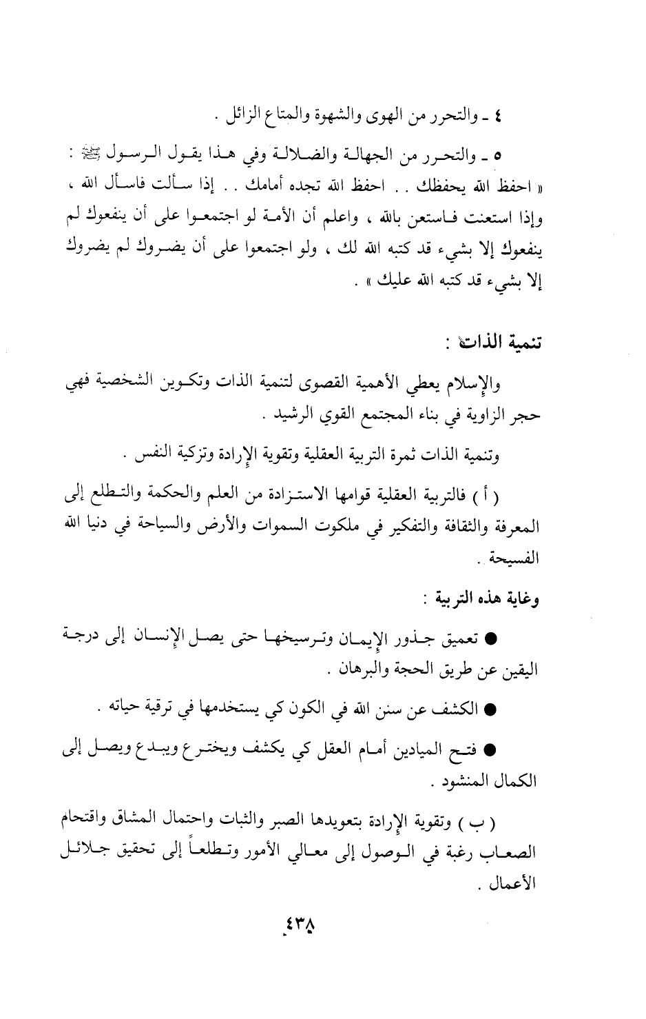 وتنمية الذات ثمرة التربية العقلية وتقوية الإرادة وتزكية النفس.