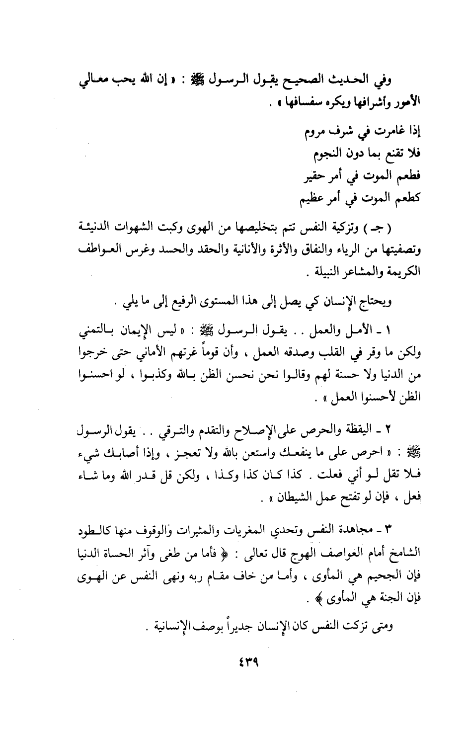وفي الحديث الصحيح يقول الرسول صلى اللّه عليه وسلم: «إن اللّه يحب معالي الأمور وأشرافها ويكره سفسافها».