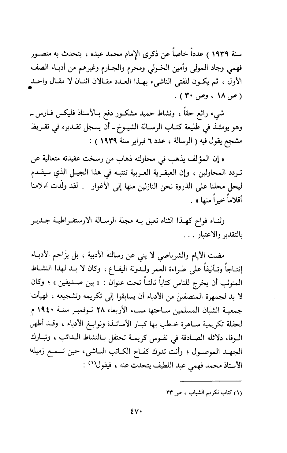سنة 1939) عددا خاصا عن ذكرى الإمام محمد عبده، يتحدث به منصور فهمي وجاد المولى وأمين الخولي ومحرم والجارم وغيرهم من أدباء الصف الأول، ثم يكون للفتى الناشىء بهذا العدد مقالان اثنان لا مقال واحد (ص 18، وص 30).