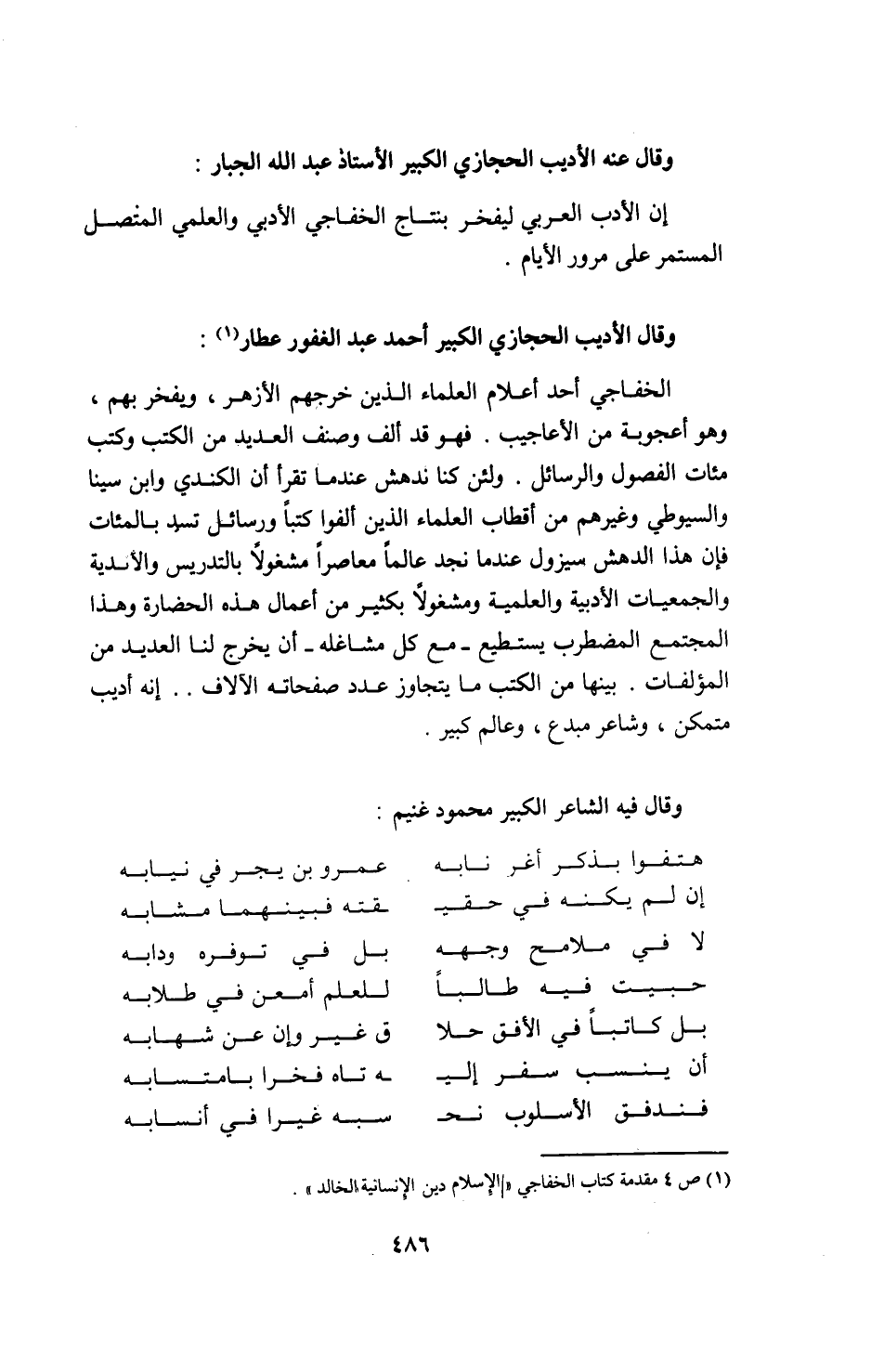 1) ص 4 مقدمة كتاب الخفاجي «الإسلام دين الإنسانية الخالد».