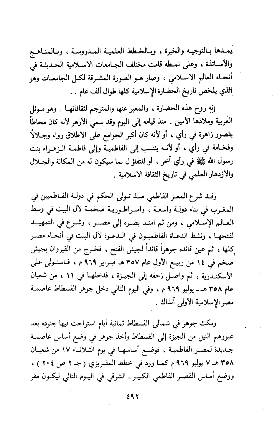 إنه روح هذه الحضارة، والمعبر عنها والمترجم لثقافاتها. وهو موئل العربية وملاذها الأمين. منذ قيامه إلى اليوم وقد سمي الأزهر لأنه كان محاطا بقصور زاهرة في رأي، أو لأنه كان أكبر الجوامع على الاطلاق رواء وجلالا وفخامة في رأي، أو لأنه ينتسب إلى الفاطمية وإلى فاطمة الزهراء بنت رسول اللّه صلى اللّه عليه وسلم في رأي آخر، أو للتفاؤل بما سيكون له من المكانة والجلال والازدهار العلمي في تاريخ الثقافة الاسلامية.