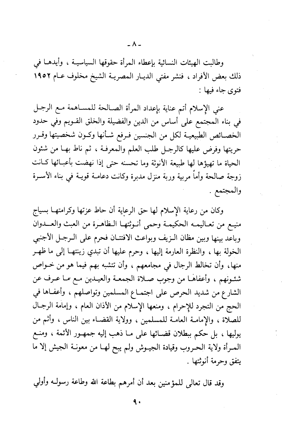 وطالبت الهيئات النسائية بإعطاء المرأة حقوقها السياسية، وأيدها في ذلك بعض الأفراد، فنشر مفتي الديار المصرية الشيخ مخلوف عام 1952 فتوى جاء فيها: