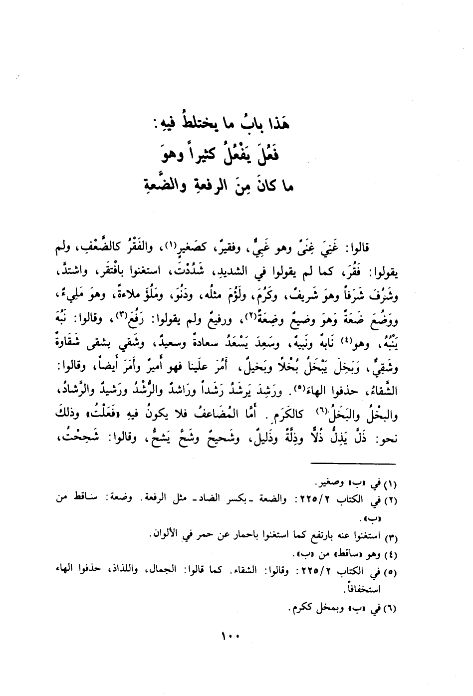 هَذا بابُ ما يختلطُ فيهِ: فَعُلَ يَفْعُلُ كثيرًا وهوَ ما كانَ مِنَ الرفعةِ والضَّعةِ.