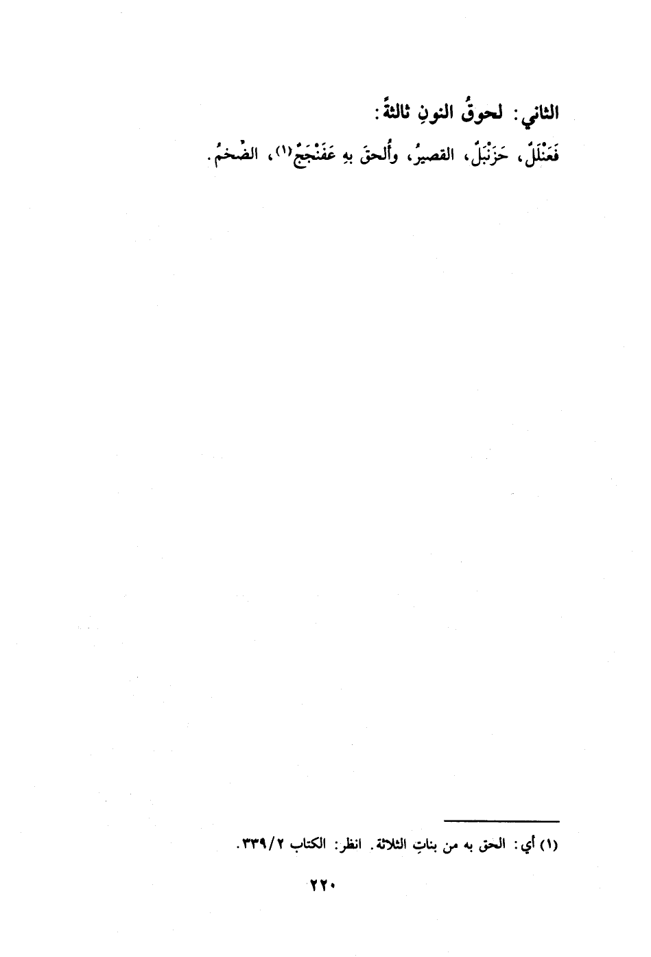 فَعَنْلَلٌ حَزَنْبَلٌ القصيرُ وأُلحقَ بهِ عَفَنْجَحٌ1، الضخمُ.