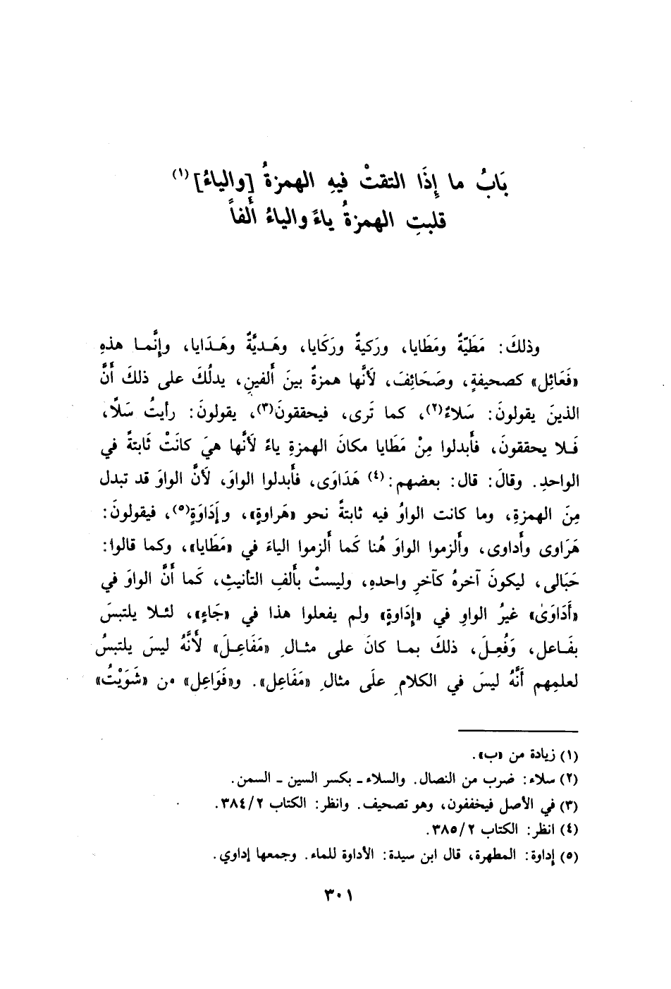 بَابُ ما إِذَا التقتْ فيهِ الهمزةُ [والياءُ] 1 قلبتِ الهمزةُ ياءً والياءُ ألفًا:
