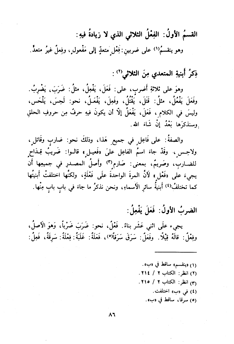 القسم الأولُ: الفِعْلُ الثلاثي الذي لا زيادةُ فيهِ.