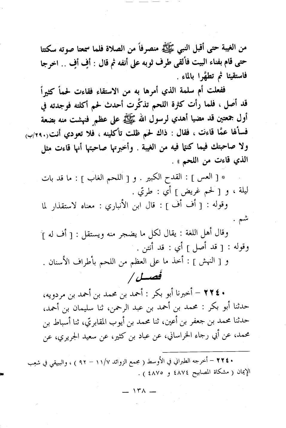 2240- أخبرنا أبو بكر: أحمد بن محمد بن أحمد بن مردويه، حدثنا أبو بكر: محمد بن أحمد بن عبد الرحمن، ثنا سليمان بن أحمد، حدثنا محمد بن جعفر بن أعين، ثنا محمد بن أيوب المقابري، ثنا أسباط بن محمد، عن أبي رجاء الخراساني، عن عباد بن كثير، عن سعيد الجريري، عن -[139]- أبي نضرة، عن جابر وأبي سعيد الخدري –رضي الله عنهما- قال: قال رسول الله صلى الله عليه وسلم: