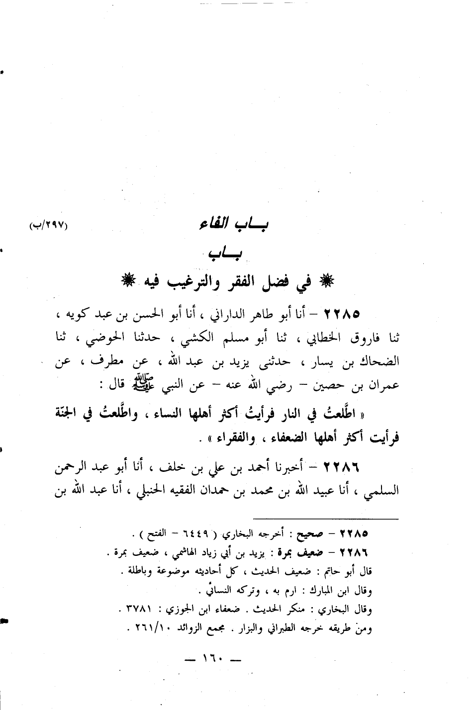 2285- أنا أبو طاهر الداراني، أنا أبو الحسن بن عبد كويه، ثنا فاروق الخطابي، ثنا أبو مسلم الكشي، حدثنا الحوضي، ثنا الضحاك بن يسار، حدثني يزيد بن عبد الله، عن مطرف، عن عمران بن حصين -رضي الله عنه- عن النبي صلى الله عليه وسلم قال: