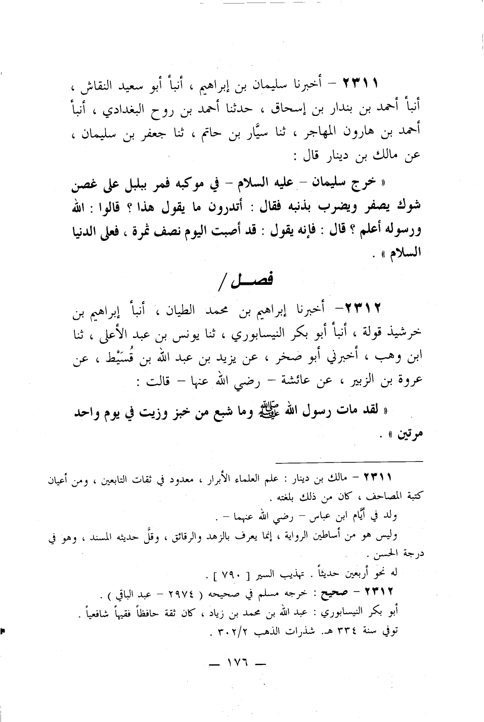 2311- أخبرنا سليمان بن إبراهيم، أنبأ أبو سعيد النقاش، أنبأ أحمد بن بندار بن إسحاق، حدثنا أحمد بن روح البغدادي، أنبأ أحمد بن هارون المهاجر، ثنا سيار بن حاتم، ثنا جعفر بن سليمان، عن مالك بن دينار قال: