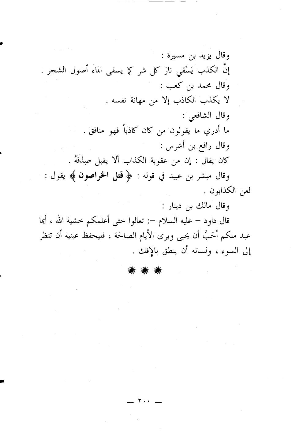 إن الكذب يسقي نار كل شر كما يسقى الماء أصول الشجر.