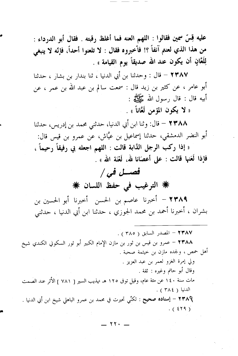 2387- قال: وحدثنا بن أبي الدنيا، ثنا بندار بن بشار، حدثنا أبو عامر، عن كثير بن زيد قال: سمعت سالم بن عبد الله بن عمر، عن أبيه قال: قال رسول الله صلى الله عليه وسلم: