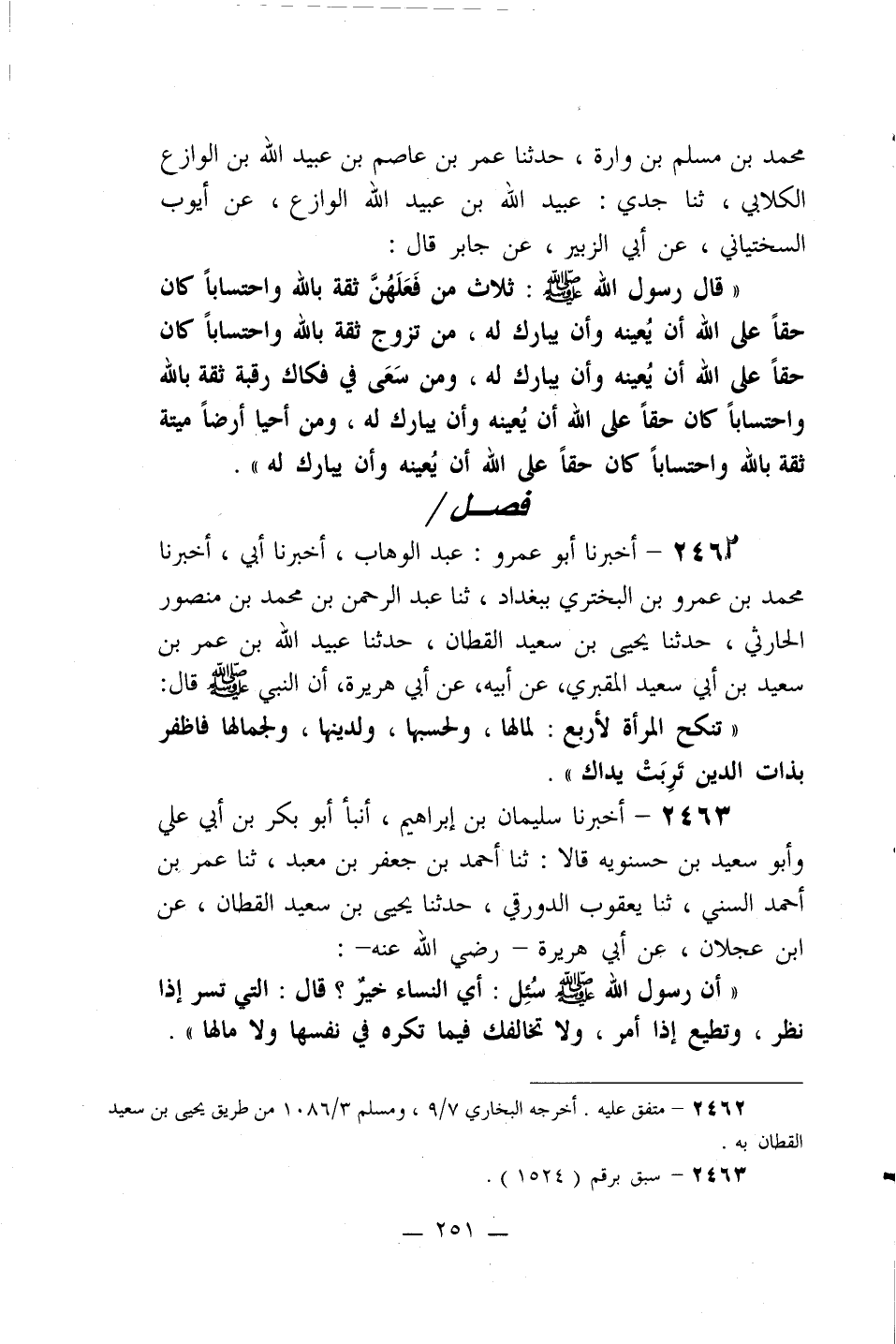 2463- أخبرنا سليمان بن إبراهيم، أنبأ أبو بكر بن أبي علي وأبو سعيد بن حسنويه قالا: ثنا أحمد بن جعفر بن معبد، ثنا عمر بن أحمد السني، ثنا يعقوب الدورقي، حدثنا يحيى بن سعيد القطان، عن ابن عجلان، عن أبي هريرة –رضي الله عنه-:
