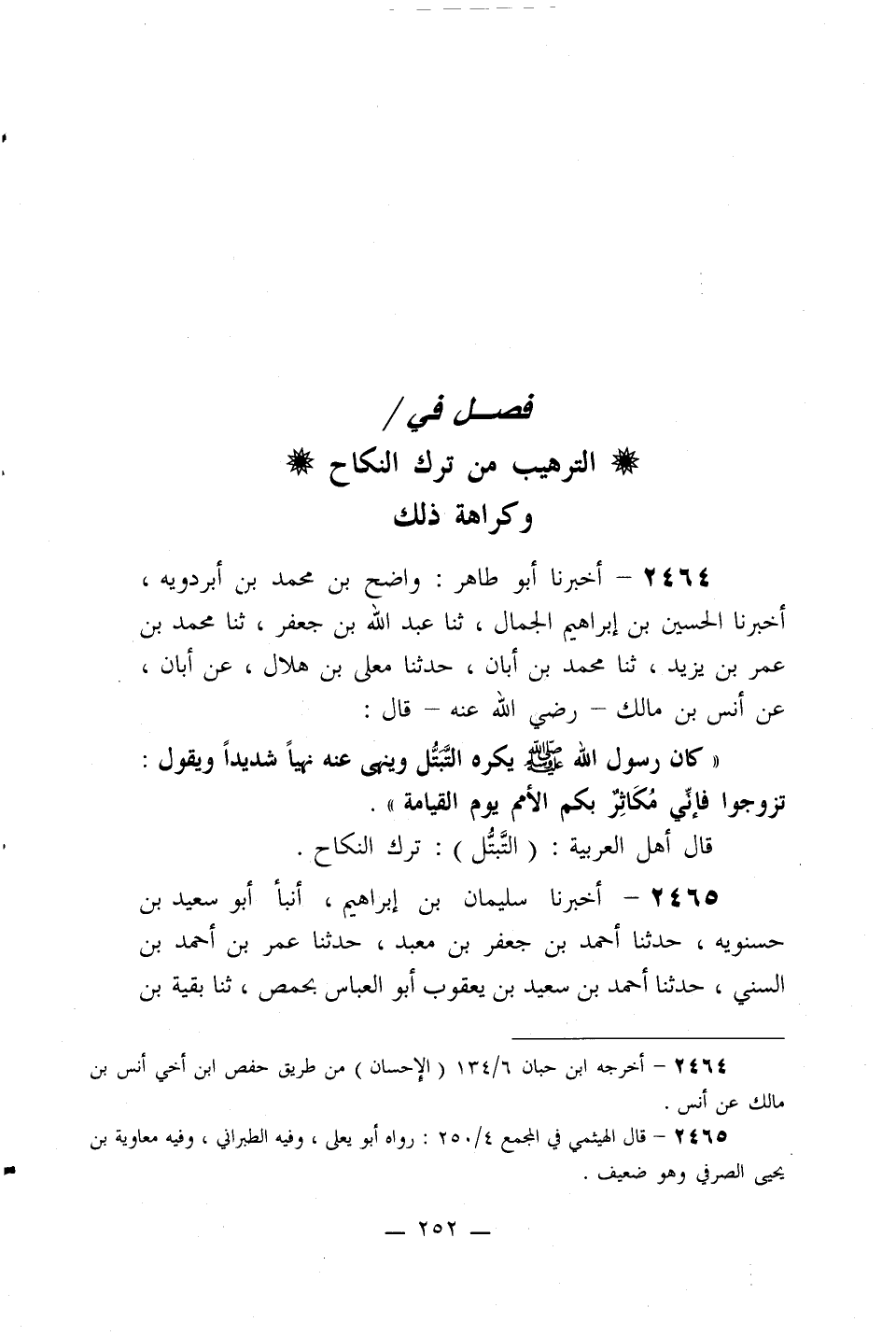 ((كان رسول الله صلى الله عليه وسلم يكره التبتل وينهى عنه نهياً شديداً ويقول: تزوجوا فإني مكاثرٌ بكم الأمم يوم القيامة)) .