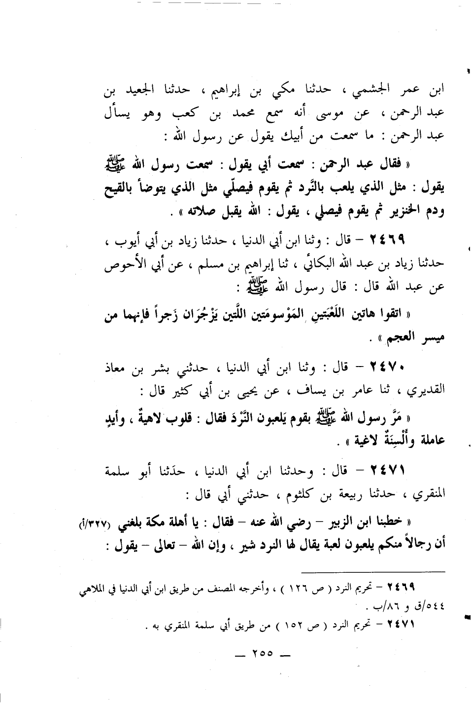 ((اتقوا هاتين اللعبتين الموسومتين اللتين يزجران زجراً فإنهما من ميسر العجم)) .