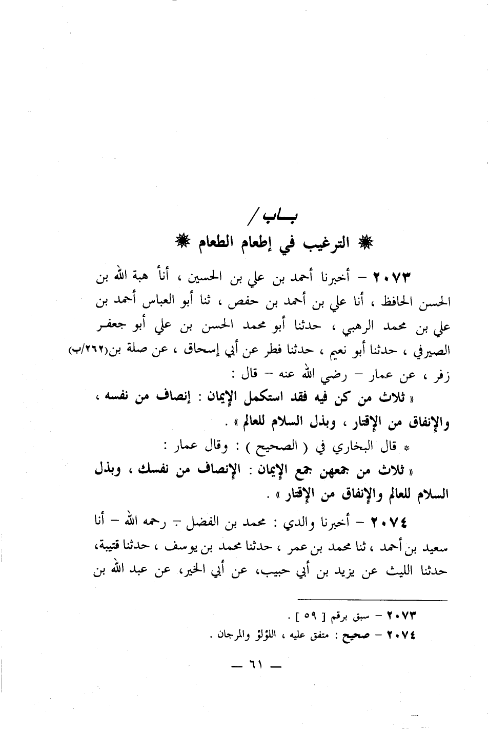 2074- أخبرنا والدي: محمد بن الفضل –رحمه الله- أنا سعيد بن أحمد، ثنا محمد بن عمر، حدثنا محمد بن يوسف، حدثنا قتيبة، حدثنا الليث عن يزيد بن أبي حبيب، عن أبي الخير، عن عبد الله بن -[62]- عمرو –رضي الله عنه-: