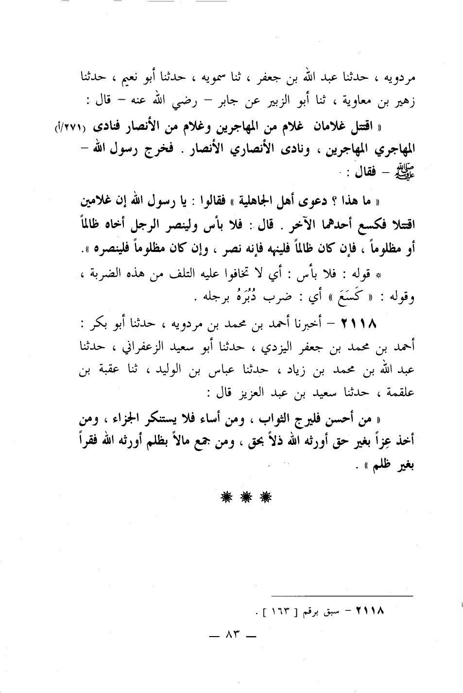 2118- أخبرنا أحمد بن محمد بن مردويه، حدثنا أبو بكر: أحمد بن محمد بن جعفر اليزدي، حدثنا أبو سعيد الزعفراني، حدثنا عبد الله بن محمد بن زياد، حدثنا عباس بن الوليد، ثنا عقبة بن علقمة، حدثنا سعيد بن عبد العزيز قال: