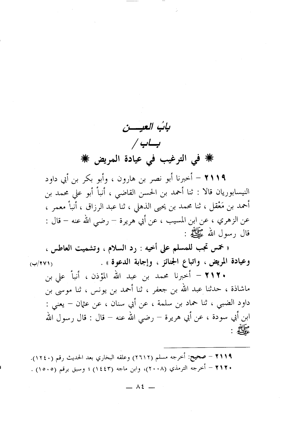 2119- أخبرنا أبو نصر بن هارون، وأبو بكر بن أبي داود النيسابوريان قالا: ثنا أحمد بن الحسن القاضي، أنبأ أبو علي محمد بن أحمد بن معقل، ثنا محمد بن يحيى الذهلي، ثنا عبد الرزاق، أنبأ معمر، عن الزهري، عن ابن المسيب، عن أبي هريرة -رضي الله عنه- قال رسول الله صلى الله عليه وسلم: