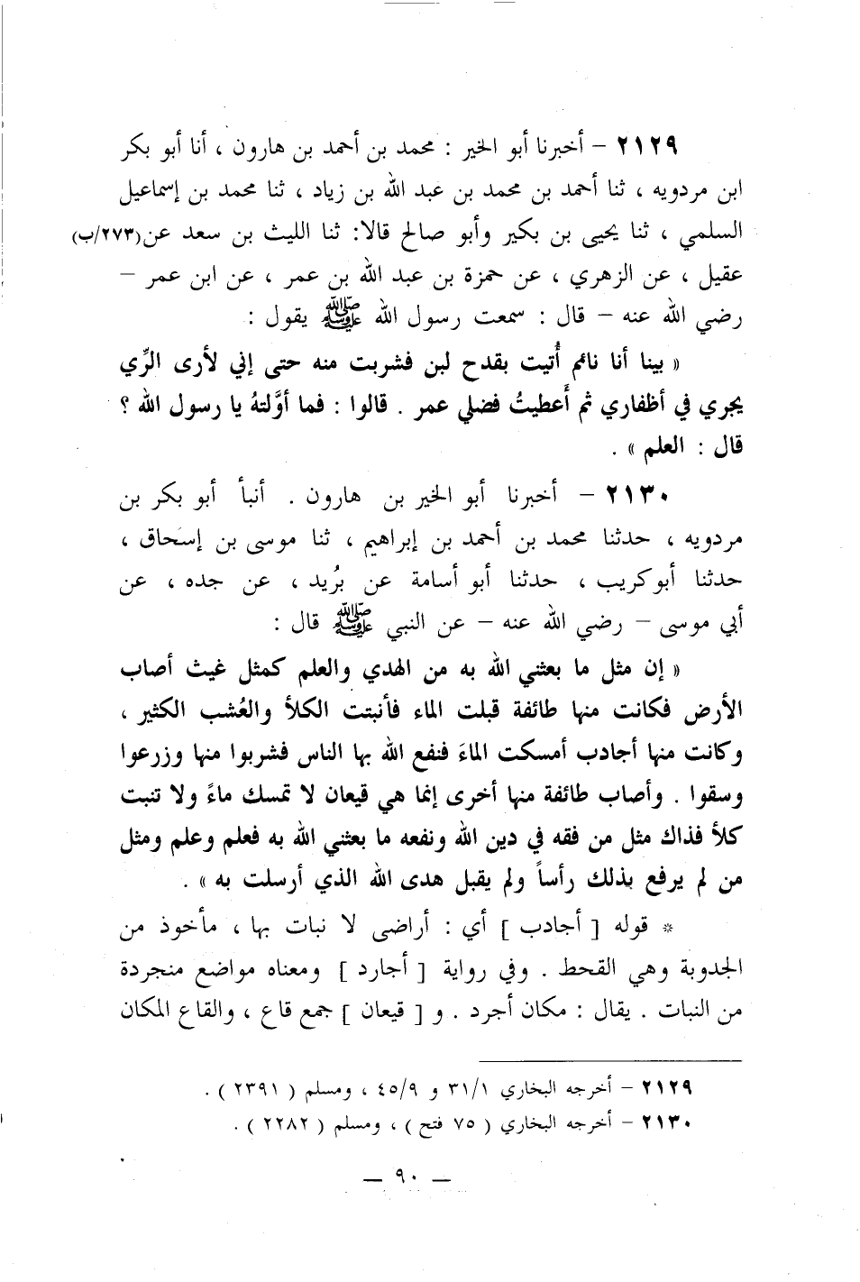 2129- أخبرنا أبو الخير: محمد بن أحمد بن هارون، أنا أبو بكر بن مردويه، ثنا أحمد بن محمد بن عبد الله بن زياد، ثنا محمد بن إسماعيل السلمي، ثنا يحيى بن بكير وأبو صالح قالا: ثنا الليث بن سعد عن عقيل، عن الزهري، عن حمزة بن عبد الله بن عمر، عن ابن عمر -رضي الله عنه- قال: سمعت رسول الله صلى الله عليه وسلم يقول: