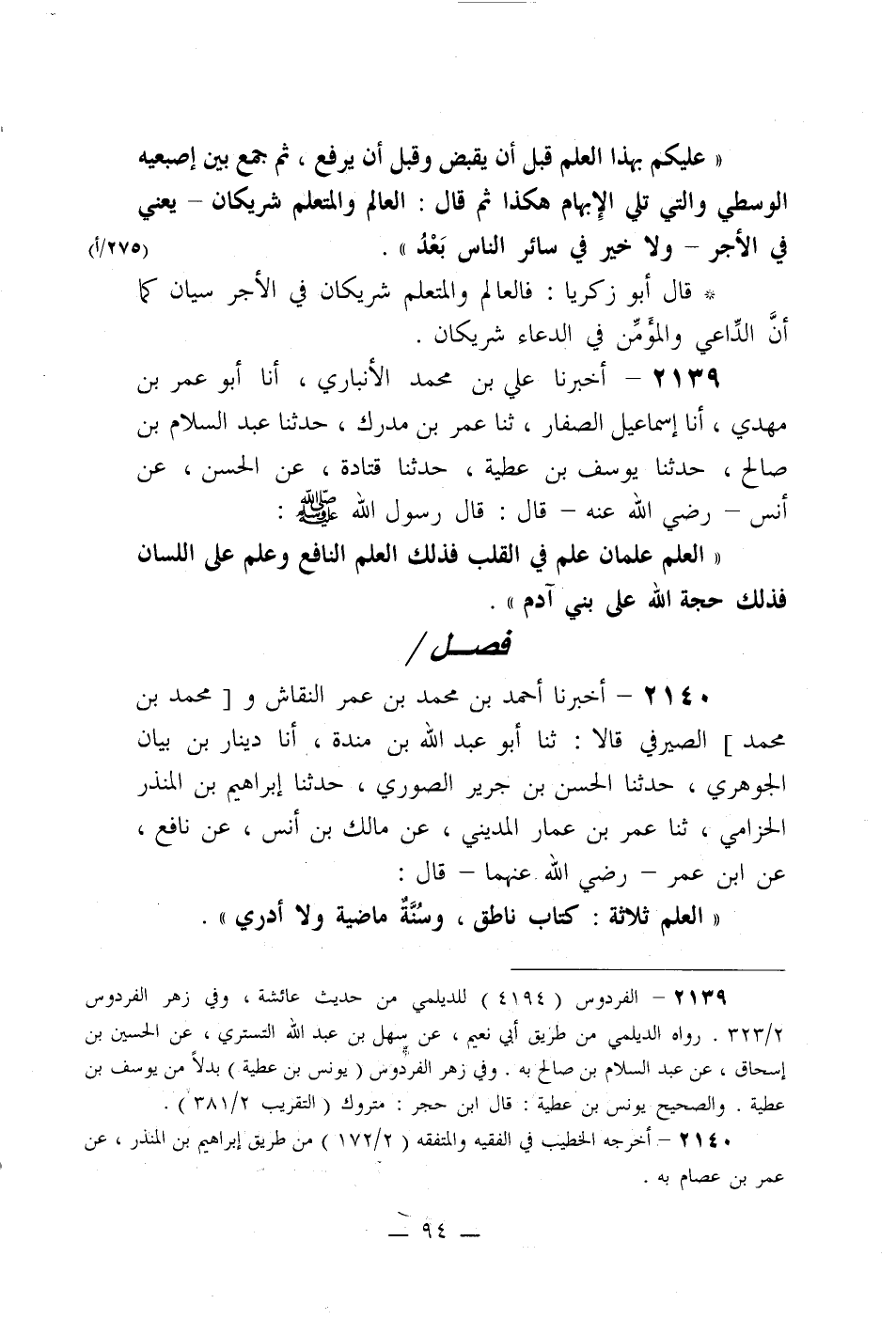 ((العلم ثلاثة: كتاب ناطق، وسنةٌ ماضية ولا أدري)) .