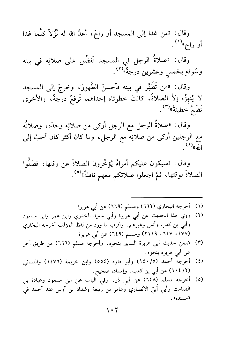 (5) أخرجه مسلم (648) عن أبي ذر. وفي الباب عن ابن مسعود وعبادة بن الصامت وأبي أُبيّ الأنصاري وعامر بن ربيعة وشداد بن أوس عند أحمد في "مسنده".