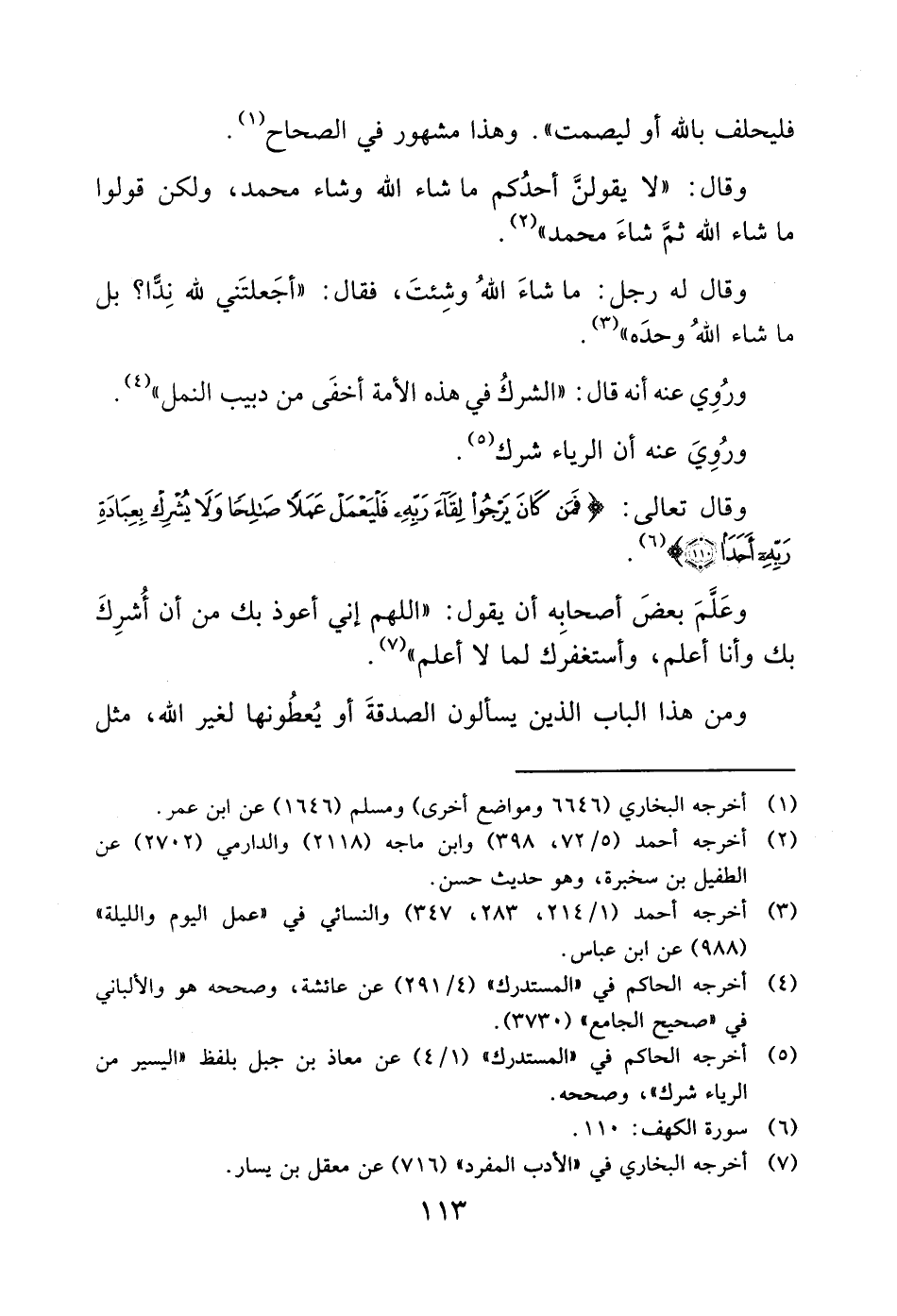 (5) أخرجه الحاكم في "المستدرك" (1/ 4) عن معاذ بن جبل بلفظ "اليسير من الرياء شرك"، وصححه.