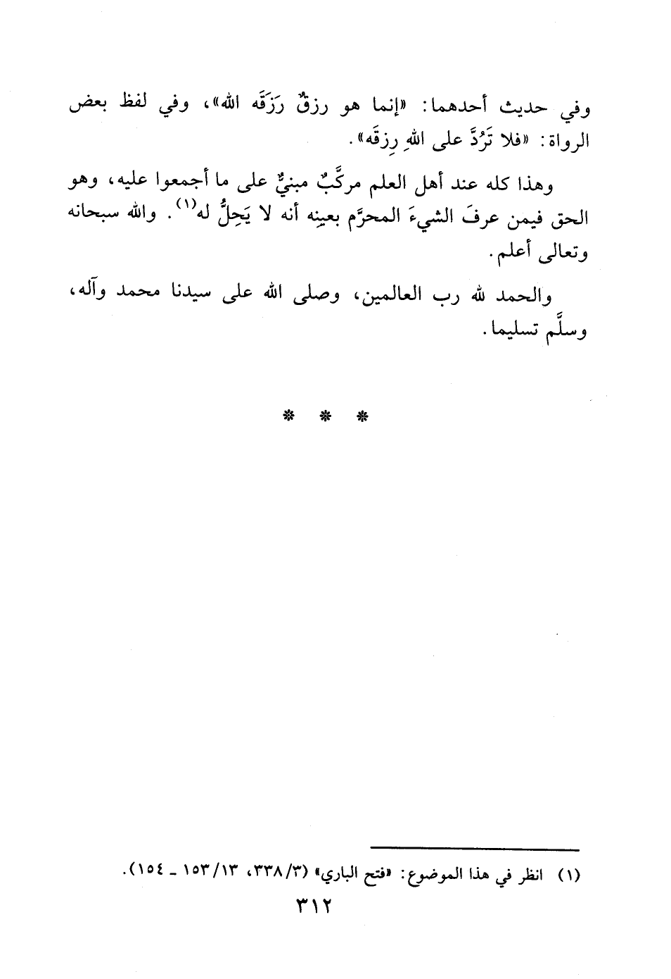 وهذا كله عند أهل العلم مركَبٌ مبنيٌّ على ما أجمعوا عليه، وهو الحق فيمن عرفَ الشيءَ المحرَّم بعينه أنه لا يَحِلُّ له (1). والله سبحانه وتعالى أعلم.