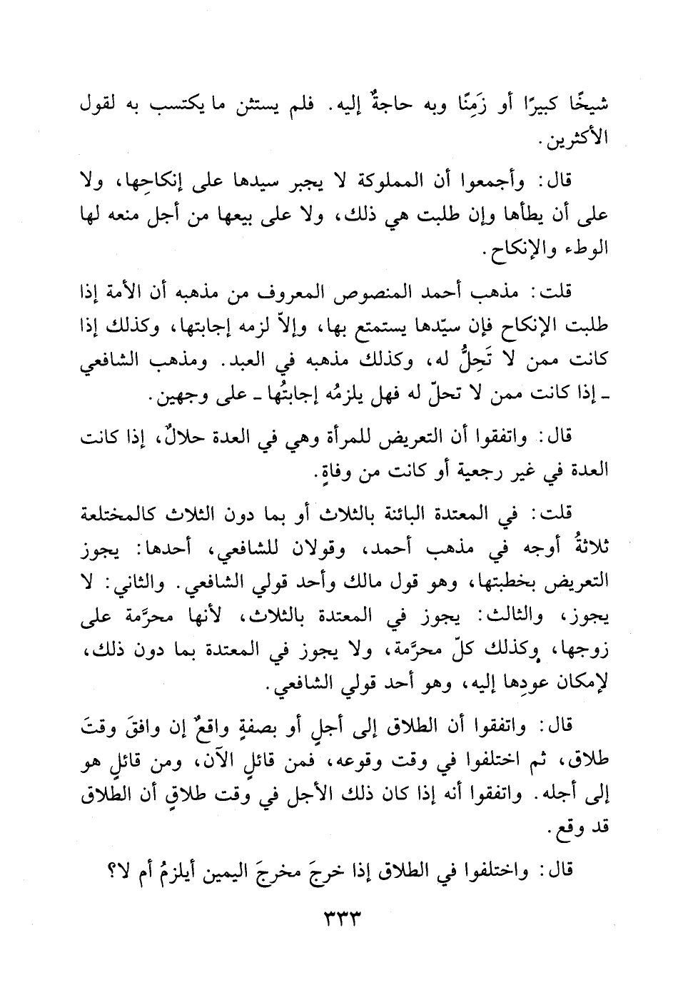 قال: واتفقوا أن التعريض للمرأة وهي في العدة حلالٌ، إذا كانت العدة في غير رجعية أو كانت من وفاةٍ.